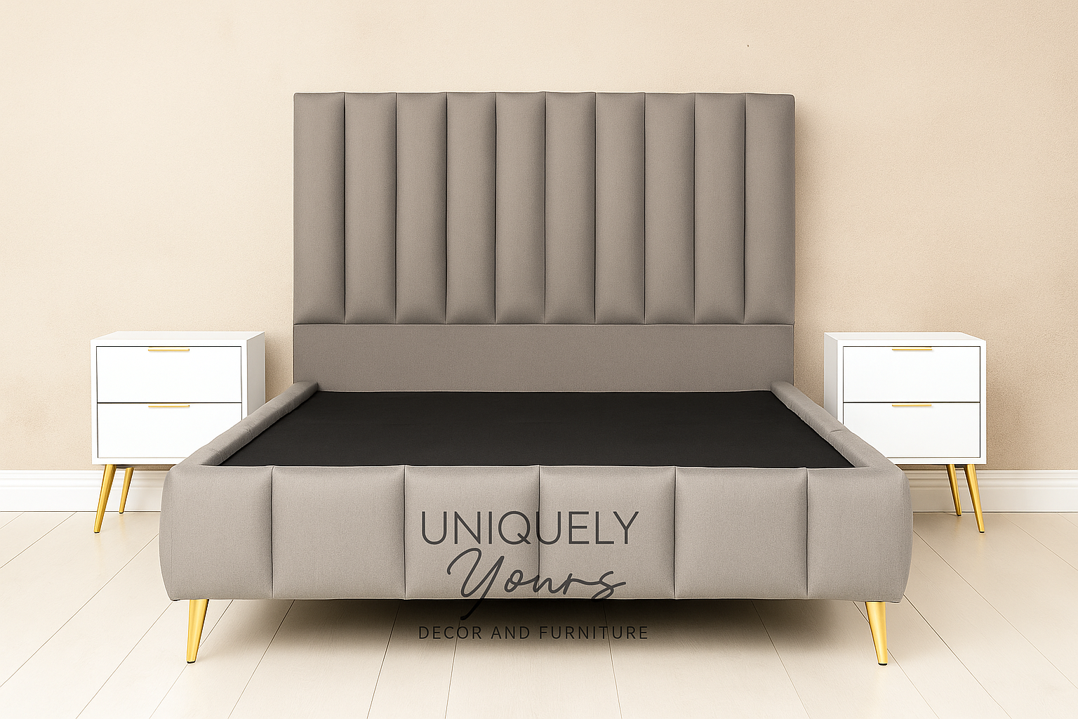 In this deal, you get a flat headboard, 2 pedastals, and a customizable pannel Base ..available in velvets. Online exclusive deals are not available in stores